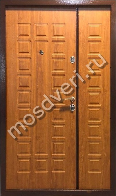 Светло-коричневая двупольная металлическая дверь МДФ — сочетает в себе стильный внешний вид и превосходные защитные характеристики.
