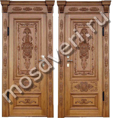 Эксклюзивная входная дверь с резным массивом — совмещает эстетичность и превосходные защитные характеристики.