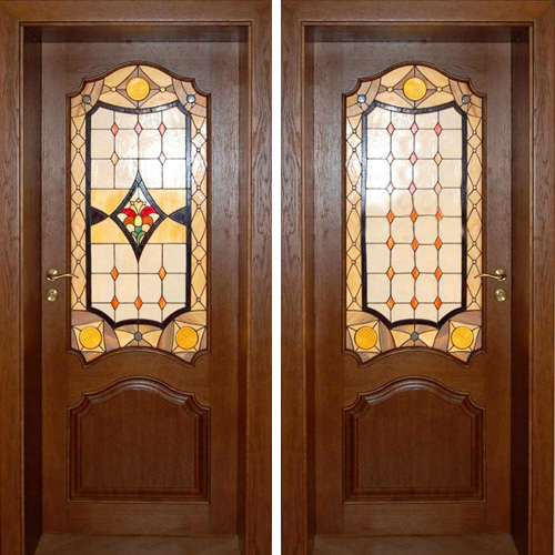 Элитная входная дверь в коттедж с массивом дуба с витражом — совмещает эстетичность и максимальную защиту.
